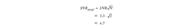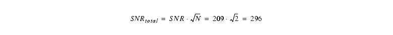 We see that now the term with the background noise (in particular, the read noise) limits the SNR. For the full 1200s exposure the SNRtotal=19.3.