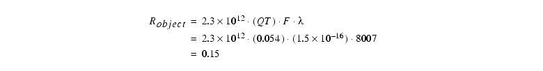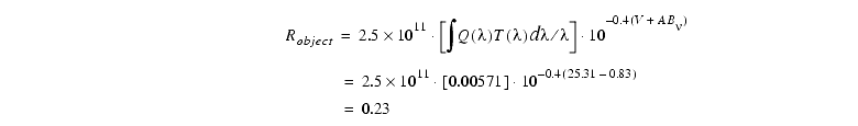 Just for fun, let us see what happens if we keep everything the same, but give the target V=25. Now we have Robject=0.74 e- s-1, and: