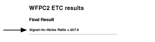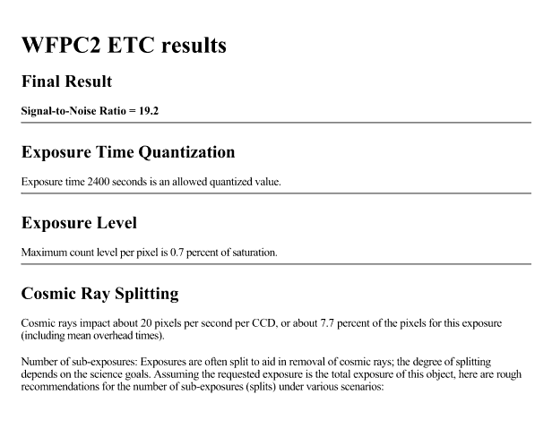 Figure 6.3: Sample Results from WFPC2 On-Line Exposure Time Calculator.