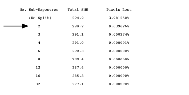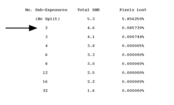 Figure 6.4: Sample Results on CR-SPLITing from WFPC2 On-Line Exposure Time Calculator Results Page.