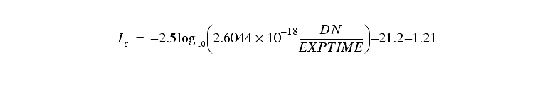 For example, to convert to the Cousins I band for an object on WF4, get PHOTZPT=-21.1 and PHOTFLAM=2.6044 x 10-18 from the header. Then convert from WFPC2 counts to magnitudes in Cousins I using: