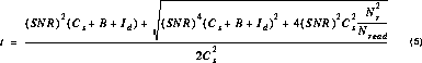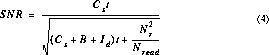 It is now possible to calculate the signal to noise ratio expected for an exposure of duration t seconds, where a number Nread of reads are taken before and after the integration. It is: