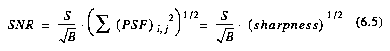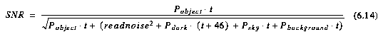 The generalized SNR per pixel per exposure for an extended source is then obtained simply by setting the sharpness to unity in equation 6.5: