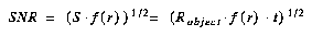 where S is the number of detected photons, and Robject is given by the above equations 6.2 through 6.4, and t is the exposure time.