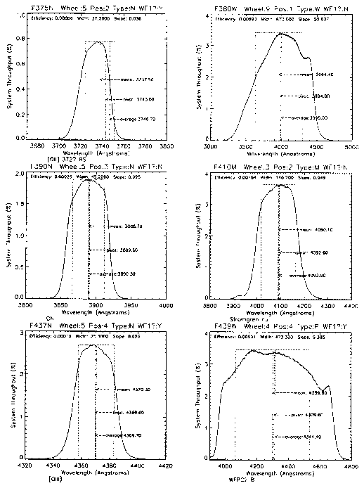 - F375N, F380W, F390N, F410M, F437N, F439W