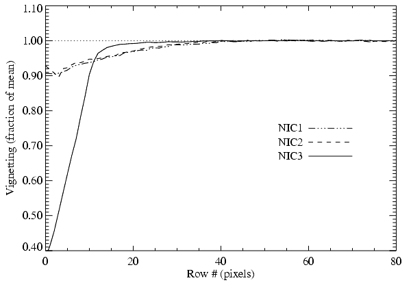 Figure 4.11: Vignetting in all three NICMOS Cameras as a function of row number.![]()