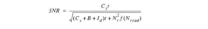The other components of unwanted signal are read noise, Nr, and dark current, Id (in e-/s/pixel). By read noise, we mean the electronic noise in the pixel signal after subtraction of two reads (double correlated sampling).