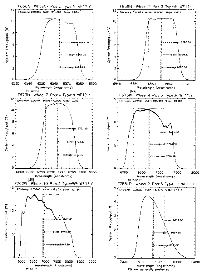 - F656N, F658N, F673N, F675W, F702W, F785LP