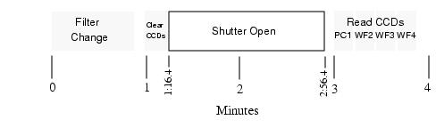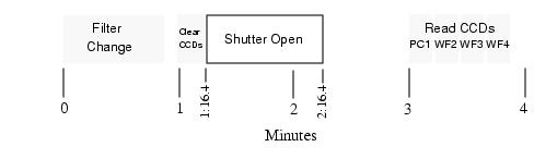 Figure 7.7: Event Timings During a 100s WFPC2 Exposure. This exposure, including the filter change, requires 4 minutes.![]()