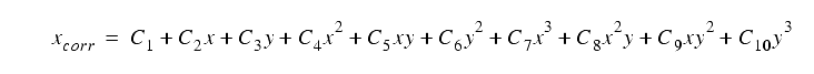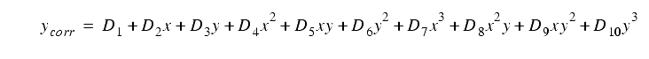 The coefficients are given in Table 5.6. The input (x,y) in the above equation are offsets from the center of each CCD in pixel units: