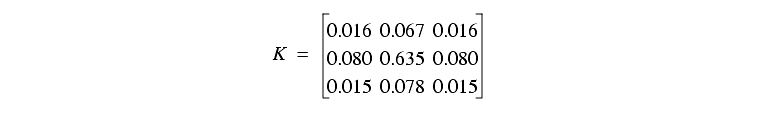 For practical purposes, the effect can be modeled as equivalent to about 40 mas RMS gaussian jitter in the WFC, and 18 mas in the PC (as compared with the typical real pointing jitter of ~3 mas delivered by the excellent HST pointing control system). Alternatively, at least in the V band, it can be modeled by convolving a simulated image by the following kernel, which gives the pixel response function averaged within pixels: