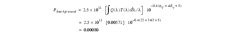 First we estimate the count rate for our target. Consulting Equation 6.2, Table 6.1, and Table 6.2 we have: