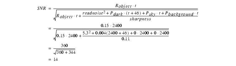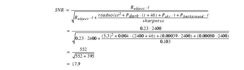 for this single exposure. The SNR for multiple 40 min. exposures would be simply 17.9(N1/2), where N is the number of exposures.