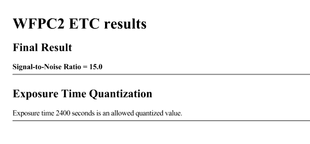 Figure 6.10: Sample Output for WFPC2 On-Line Exposure Time Calculator.