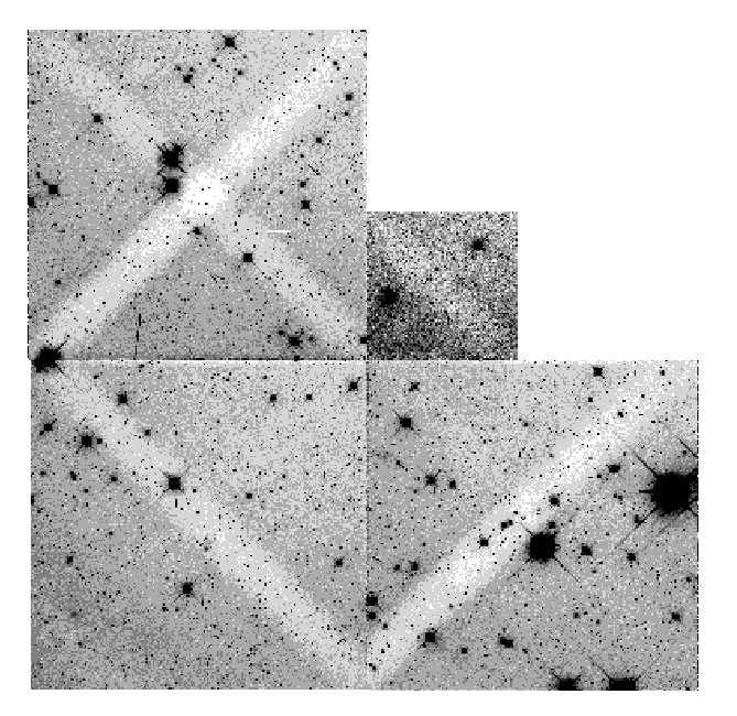 Figure 7.1: Example of Scattered Earth Light. Scattered light contributes ~100 e- of background throughout this image. The camera spiders block some of this scattered light along CCD diagonals, hence forming "X" patterns and bars where the background is reduced by ~40% in this image.