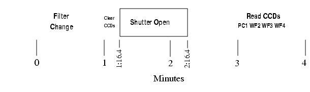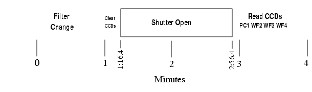 Figure 7.7: Event Timings During a 100s WFPC2 Exposure. This exposure, including the filter change, requires 4 minutes.