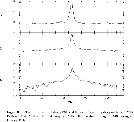 There are several rings surrounding the nucleus of the galaxy in each restored image of M87. This is almost certainly an artifact of the mismatch between the true PSF and the models used, since the structure of the unrestored image is clearly dominated by the familiar features of the PSF (Fig. 8).