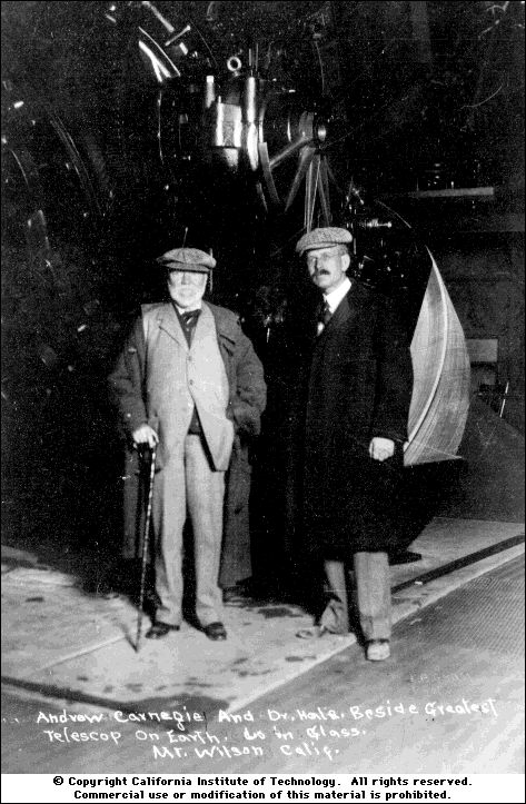 Hale and Carnegie next to the 60 inch (Caltech archives) |