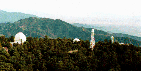 The 60-inch telescope was completed in late 1908, the same year as the 60-foot Solar Tower went into operation, and quickly proved its worth. Hale didn't stand still, however - two years previously, he had received an offer from John D. Hooker of funding for the purchase of a 100-inch mirror blank, and over the next 10 years, his efforts were devoted to making the 100-inch Hooker telescope a reality. The telescope finally went into operation in 1919, and served a key role in both the extragalactic studies of Hubble and Humason, and in Walter Baade's creation of the concept of stellar populations. Carnegie Observatories ran operations at Mount Wilson until the early 1980s. During the 80 years of its existence, the Los Angeles conglomeration had increased vastly in size, with a corresponding increase in light pollution. OCIW decided to concentrate on developing its southern out-station at Las Campanas, handing Mt. Wilson the same fate that Hale handed Yerkes. Observations have not ceased, however: the optical Observatory is currently run by the Mount Wilson Observatory Association , and is the focus of considerable work in adaptive optics, including the optical interferometric array, established very recently by Georgia Tech. Follow this link for some fine recent pictures of Mt. Wilson. |