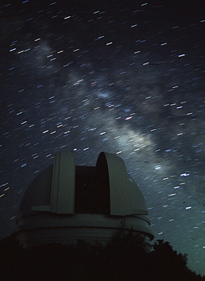 The 200-inch at work, with the Milky Way in the background (Hogg/Danner) |