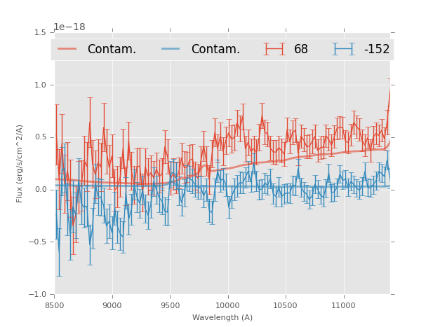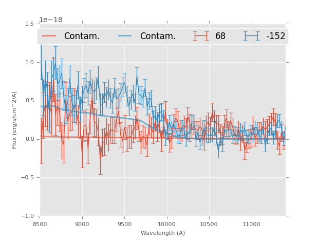 | NUMBER | Coordinates | Magnitude | Direct Image | 2D Grism Image | 1D Flux | 1D Corrected |