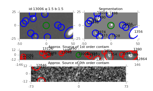 | NUMBER | Coordinates | Magnitude | Direct Image | 2D Grism Image | 1D e-/s | 1D Flux | 1D Corrected |